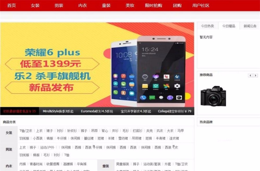 1、网站模块分为商品展示、会员中心、登录、注册、帮助中心、团购专区、促销模块;以及网站最新动态公告等。