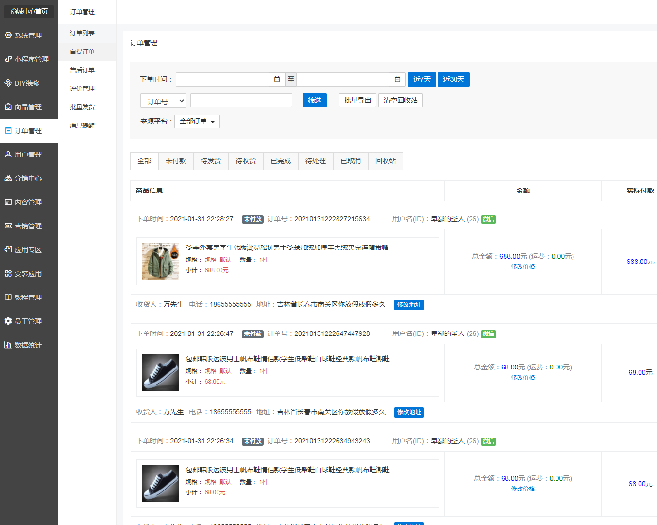 3、发货:手动发货源码,在卖家未发货前,已申请退款的;